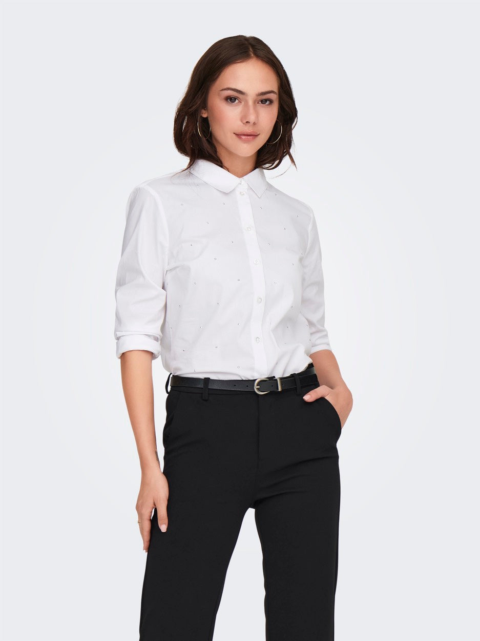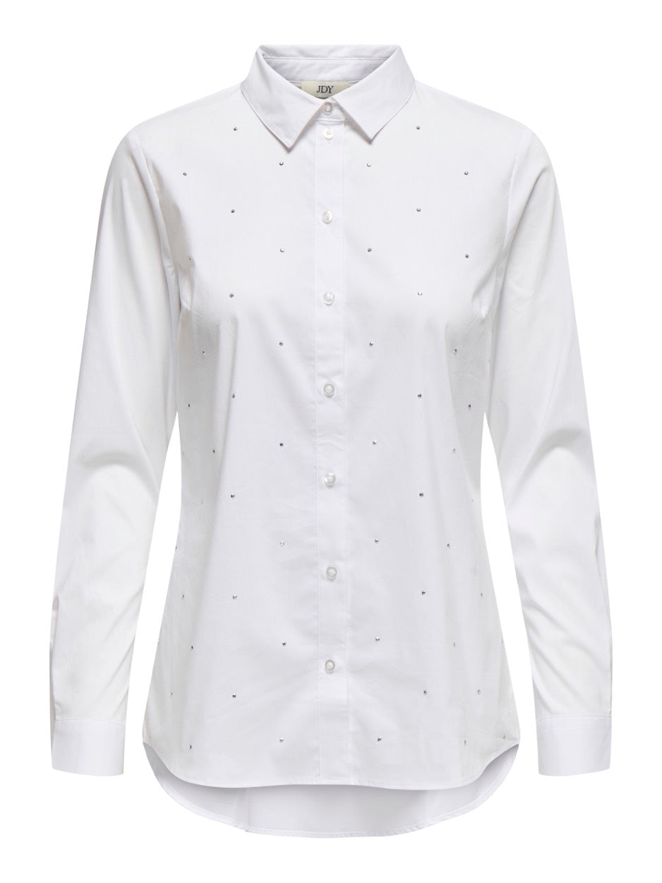 De witte blouse is een must-have item in de kledingkast van iedere vrouw en deze prachtige blouse van Jacqueline de Yong is een echte aanwinst! Gemaakt van 72% katoen, 24% polyester en 4% elastaan, is deze blouse niet alleen comfortabel, maar ook duurzaam en gemakkelijk te onderhouden. De blouse heeft lange mouwen en is perfect voor alle seizoenen. De stof voelt heerlijk zacht aan op de huid en heeft een lichte stretch voor een optimale pasvorm. De blouse heeft een klassiek model met een kraag en knoopsluiting aan de voorkant. Hierdoor is de blouse zowel zakelijk als casual te dragen. Combineer het met een mooie pantalon voor een formele look of met een jeans voor een meer casual uitstraling. Deze blouse is een echte allrounder en mag niet ontbreken in jouw garderobe. Bestel nu deze prachtige witte blouse van Jacqueline de Yong en straal in stijl!