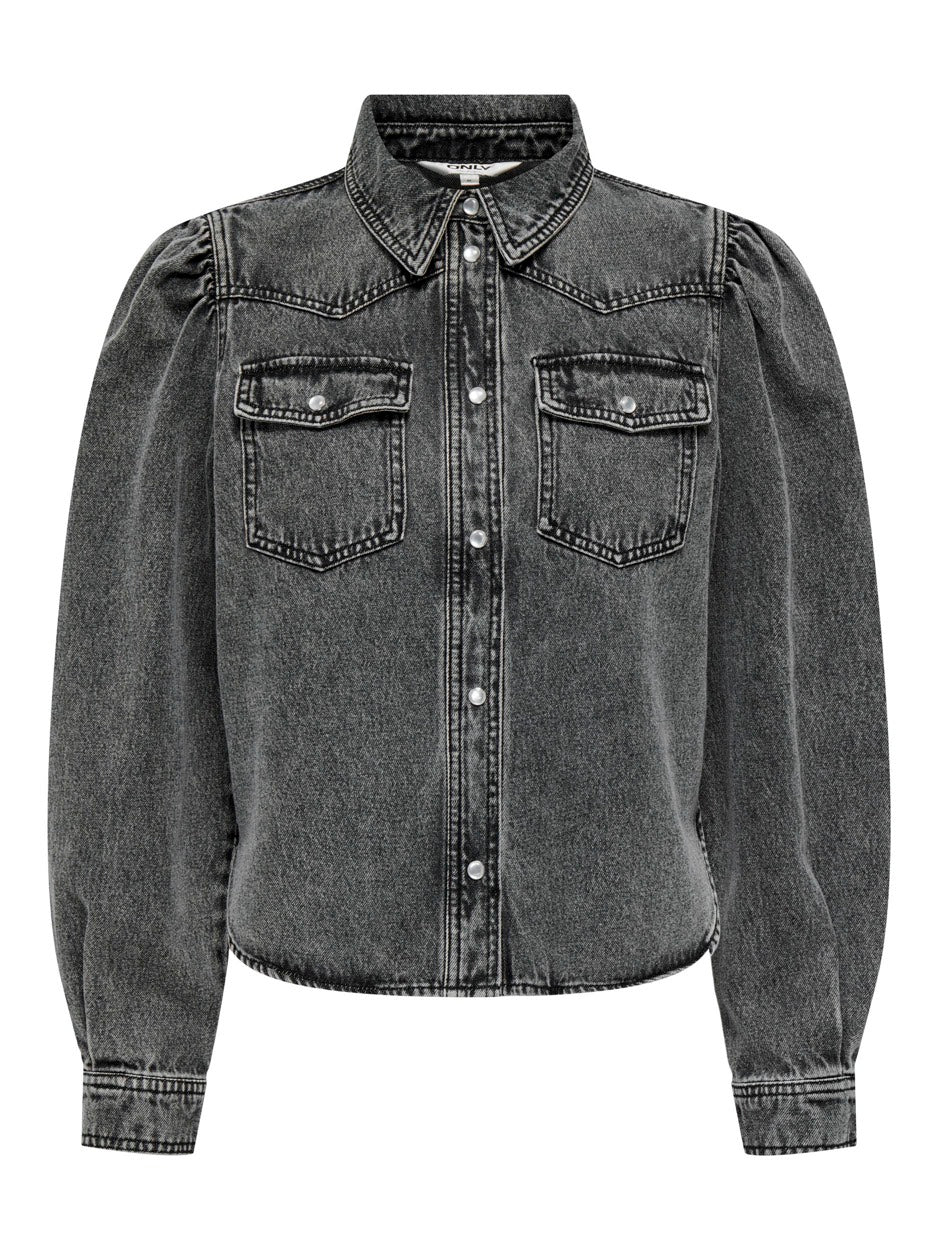 Onlcorey L/s Ruched Sleeve Dnm Shir - Black Denim