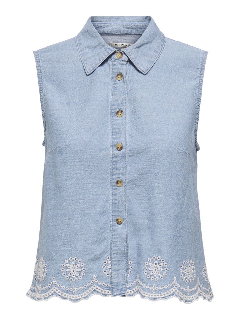 Onlmoon S/l Brod Anglaise Dnm Shirt Qyt - Blue Denim
