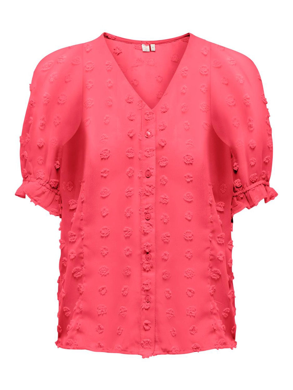 Onlpixi Dobby Life Ss Frill Top Wvn - Fuchsia