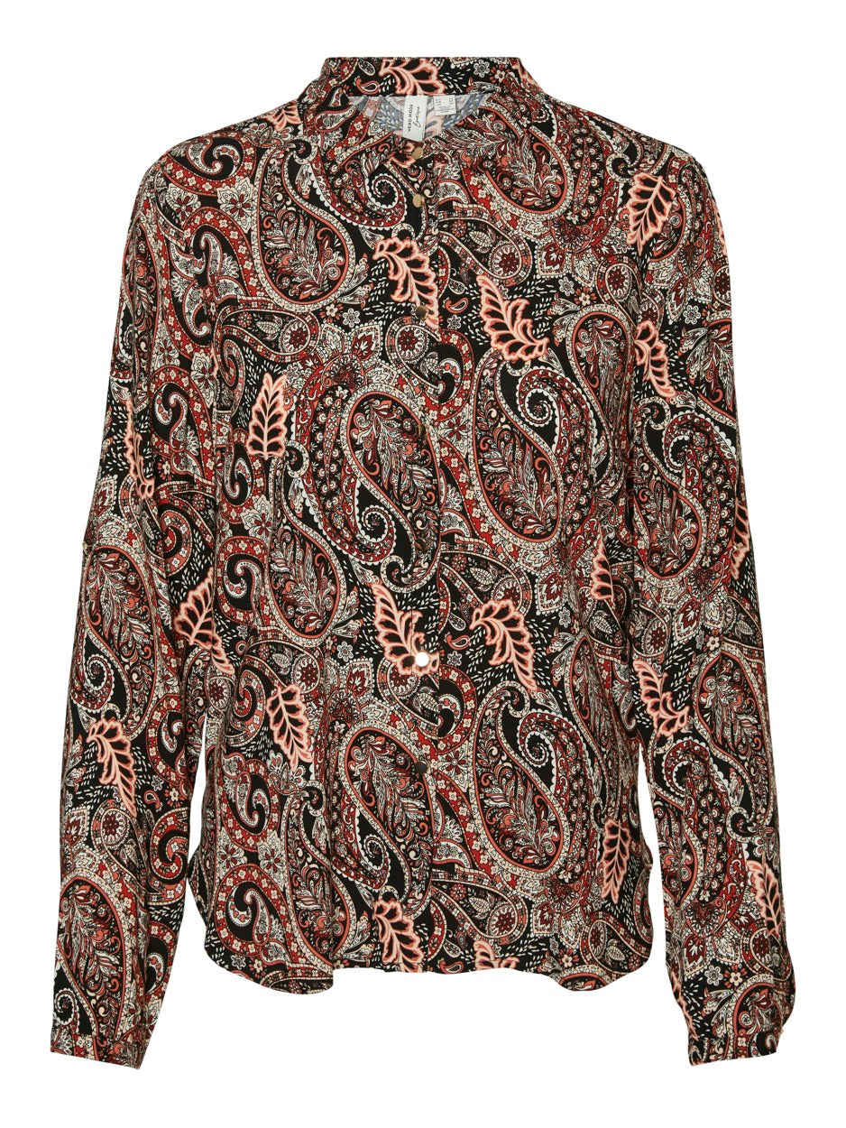 Vmmable L/s Shirt Wvn Btq - Rood Dessin