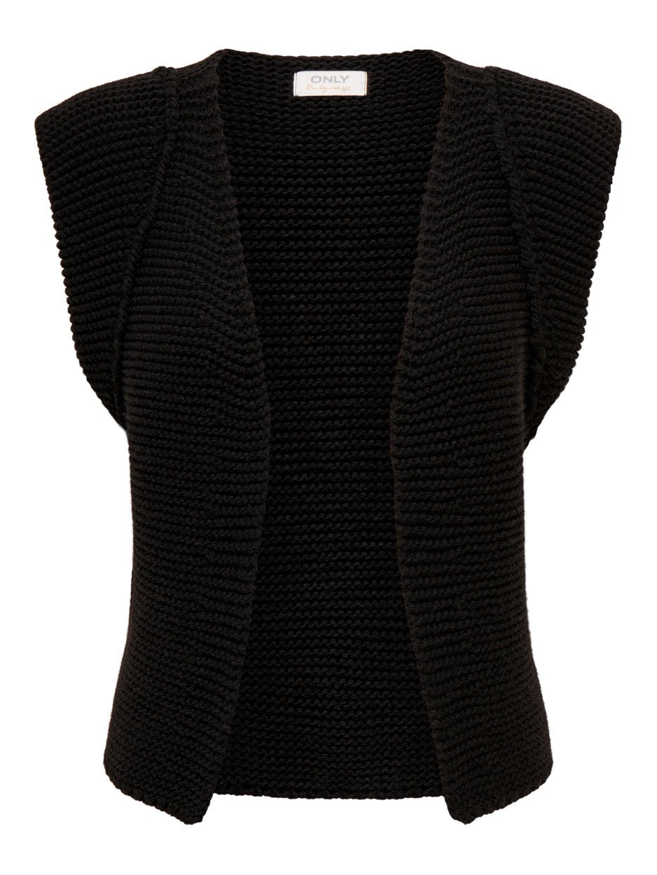 Dit mouwloze gilet van het merk Only is een must-have voor elke modieuze vrouw. Het is gebreid van hoogwaardig acrylmateriaal en voelt daardoor heerlijk zacht en comfortabel aan op de huid. De zwarte kleur geeft het gilet een tijdloze en klassieke uitstraling, waardoor het perfect te combineren is met elke outfit.