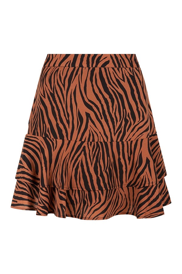 Deze trendy bruin dessin kleurige rok van Lofty Manner is een echte must-have voor elke fashionista. De Loft Manner Rok Mara is een korte rok met twee banen volants aan de onderkant, waardoor de rok een speels en vrouwelijk effect heeft. De achterkant van de mini skirt is voorzien van een elastiek, waardoor de rok altijd comfortabel zit en perfect aansluit op jouw figuur.