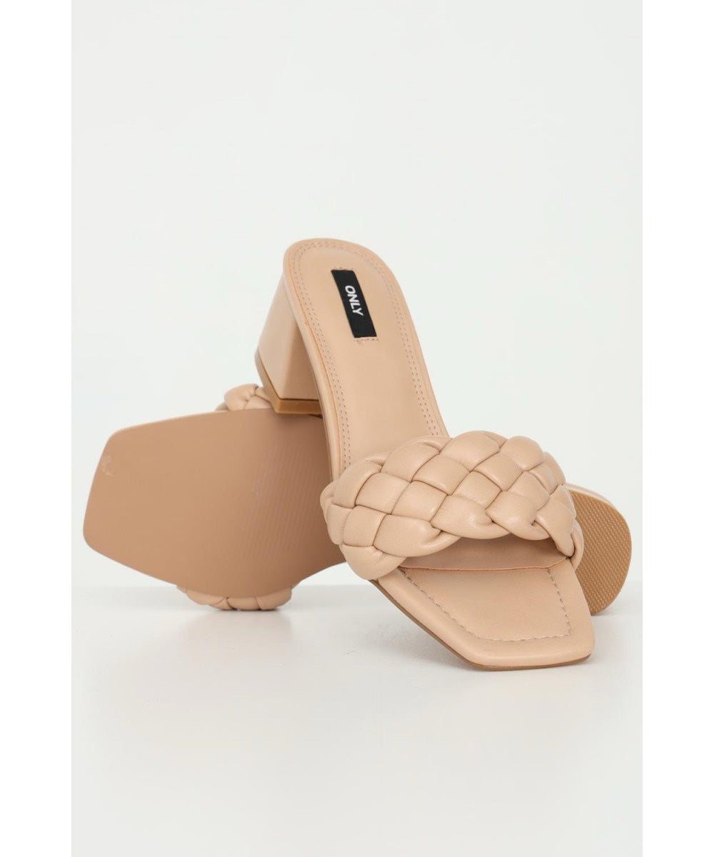 Geef je zomerse look een stijlvolle touch met deze taupekleurige schoen slippers dames van het populaire merk Only. Deze slippers zijn gemaakt van hoogwaardig materiaal met een leren uitstraling en hebben een comfortabele hak. Het opvallende detail aan de voorkant, met gevlochten motief, geeft de slippers een trendy en elegante uitstraling. Perfect voor een dagje strand, een zomerse wandeling of een avondje uit. Deze slippers mogen niet ontbreken in je schoenencollectie! Bestel nu en geniet van optimaal comfort en stijl met deze prachtige Only slippers.