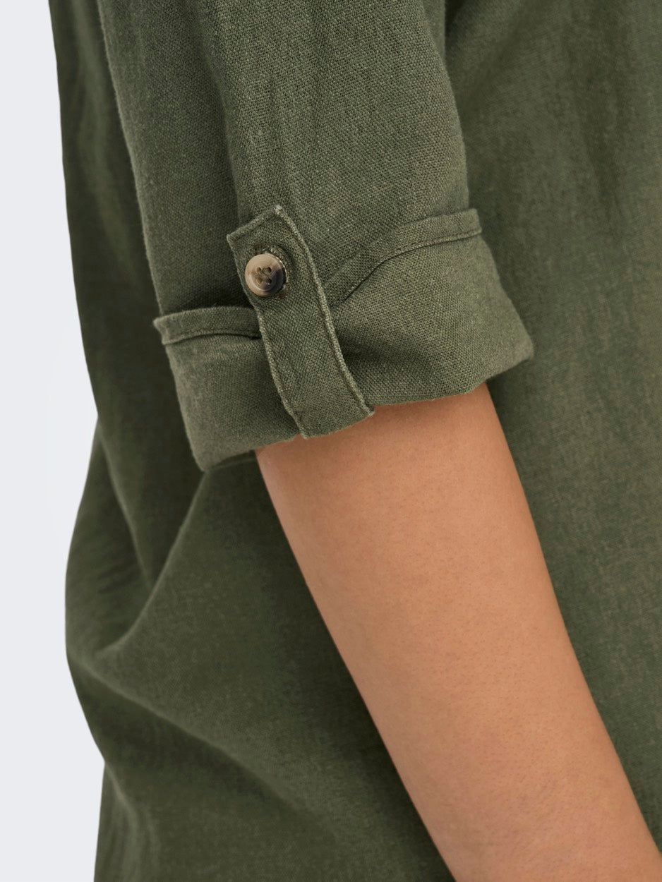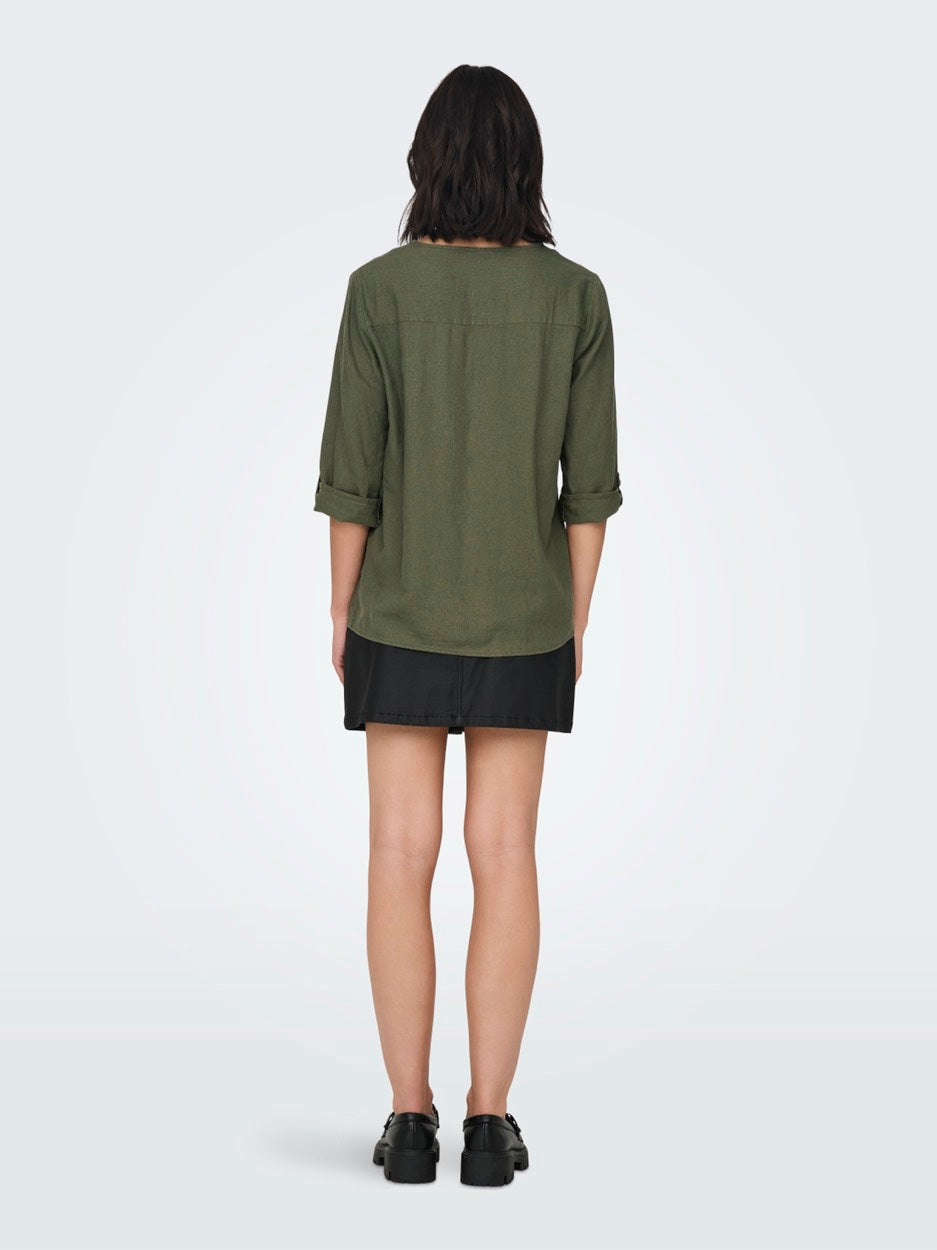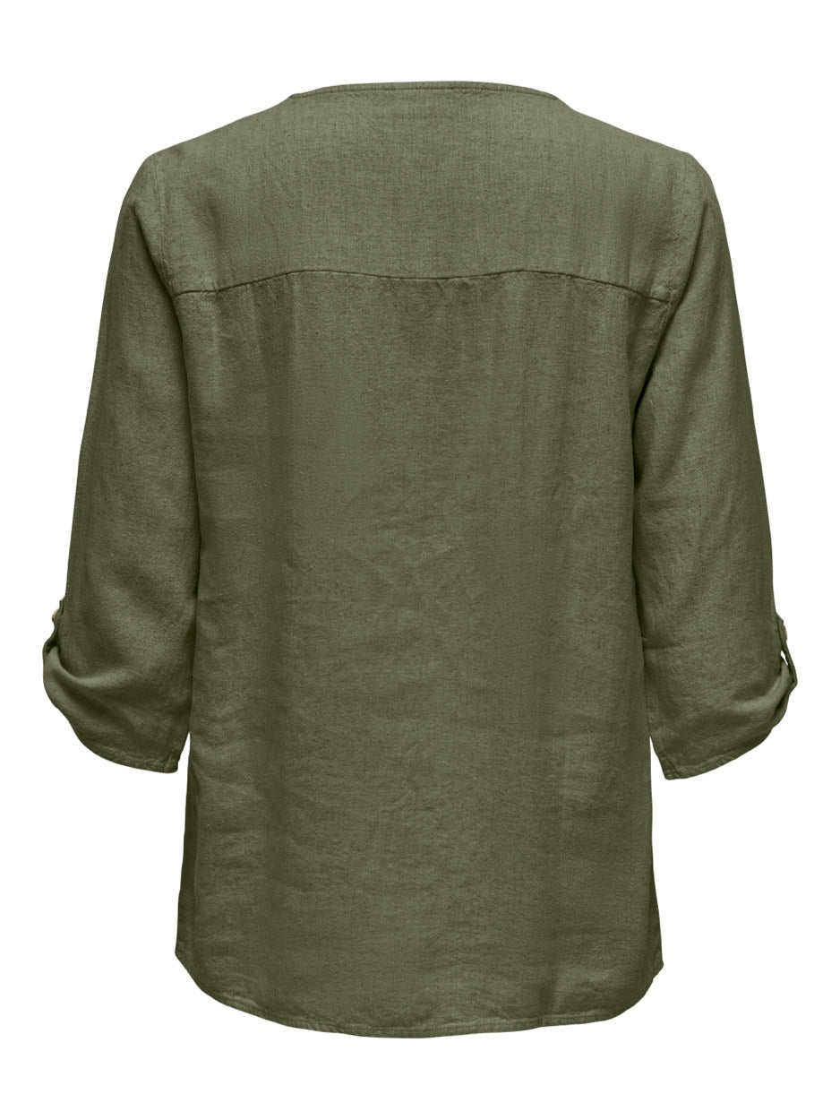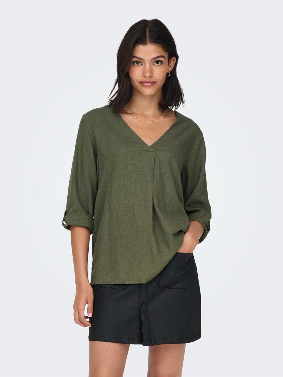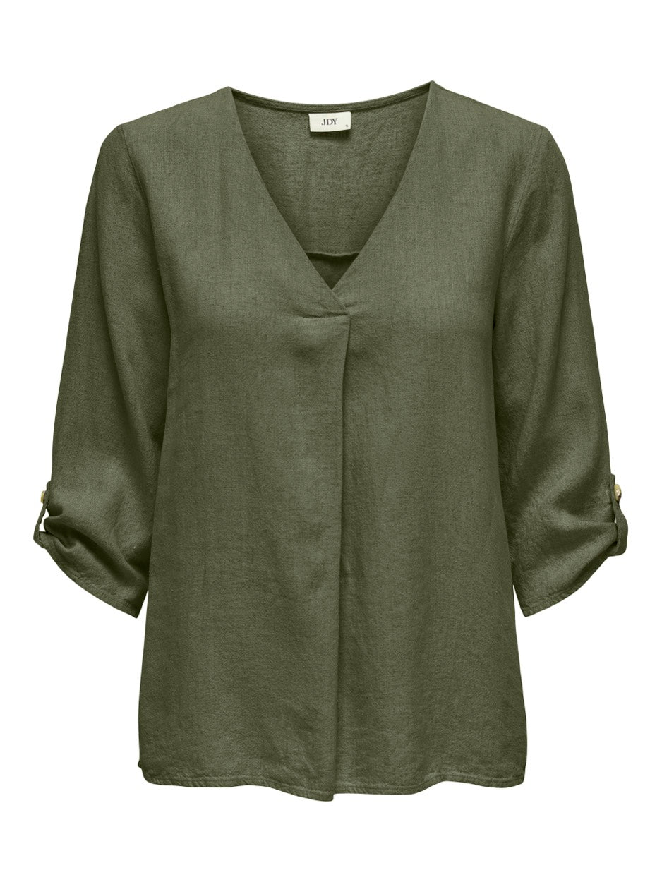 Jdysay 3/4 Linen V-neck Top Wvn Dia - Army
