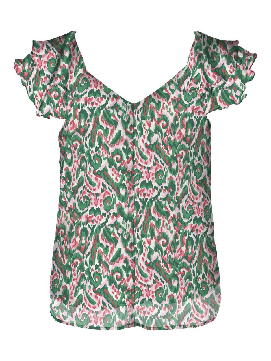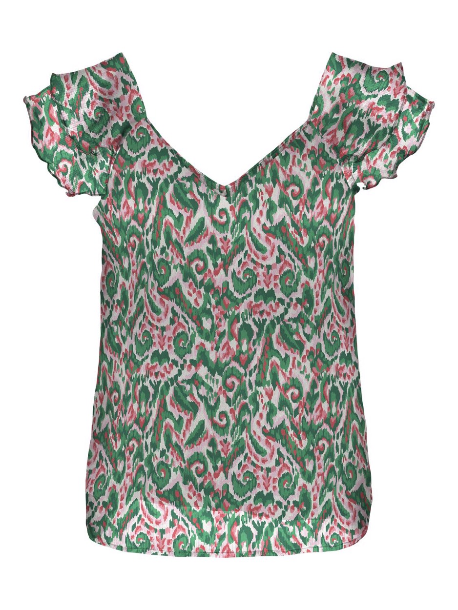 Onlasra Life Capsleeve V-neck Top E - Groen Dessin