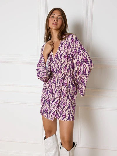 Deze prachtige paars dessin jurk van het merk Refined Department is een echte must-have voor elke modebewuste dame. Met zijn mini lengte is deze jurk perfect voor een avondje uit of een feestelijke gelegenheid. De jurk is gemaakt van 100% rayon, wat zorgt voor een comfortabele pasvorm en een luxe uitstraling. Het paarse dessin geeft de jurk een vrouwelijke en trendy uitstraling. De jurk is mooi aangesloten en heeft korte mouwen, waardoor het je figuur prachtig accentueert. Met deze jurk steel je gegarandeerd de show en ben je klaar voor elke gelegenheid. Bestel nu deze paars dessin jurk en voeg een vleugje elegantie toe aan jouw kledingcollectie!