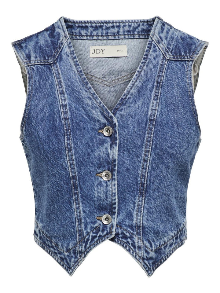 Deze blauwe denim gilet voor dames van het merk Jacqueline de Yong is een echte must-have voor je garderobe. Deze gilet is gemaakt van 100% katoen, wat zorgt voor een comfortabele en ademende pasvorm. Door de blauwe kleur is deze gilet gemakkelijk te combineren met verschillende outfits. Draag hem over een eenvoudig t-shirt voor een casual look, of over een chique blouse voor een meer geklede uitstraling. De gilet heeft een vrouwelijke fit en is voorzien van handige knoopsluitingen. Perfect voor elke gelegenheid, van een dagje uit tot een avondje uit. Durf te experimenteren met deze prachtige gilet en creëer eindeloos veel stijlvolle outfits. Shop nu bij NummerZestien en voeg deze trendy damesgilet toe aan je kledingcollectie!