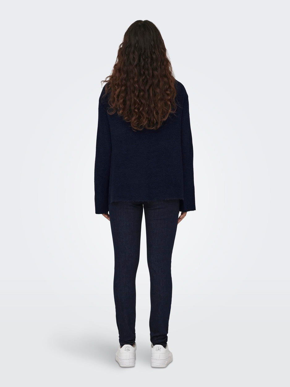 Jdyelanora L/s Highneck Slit Pullov - Navy
