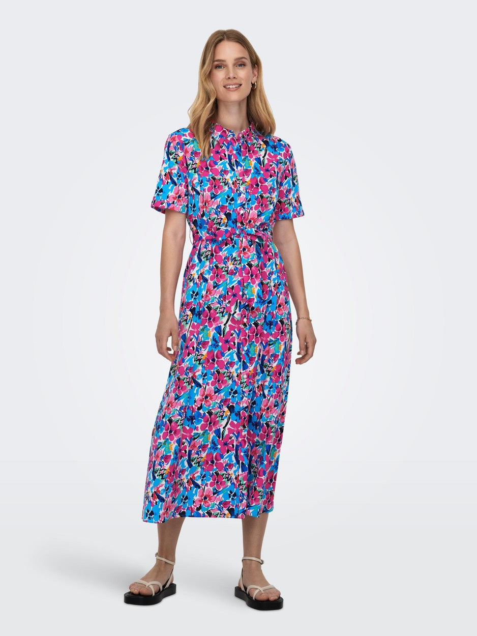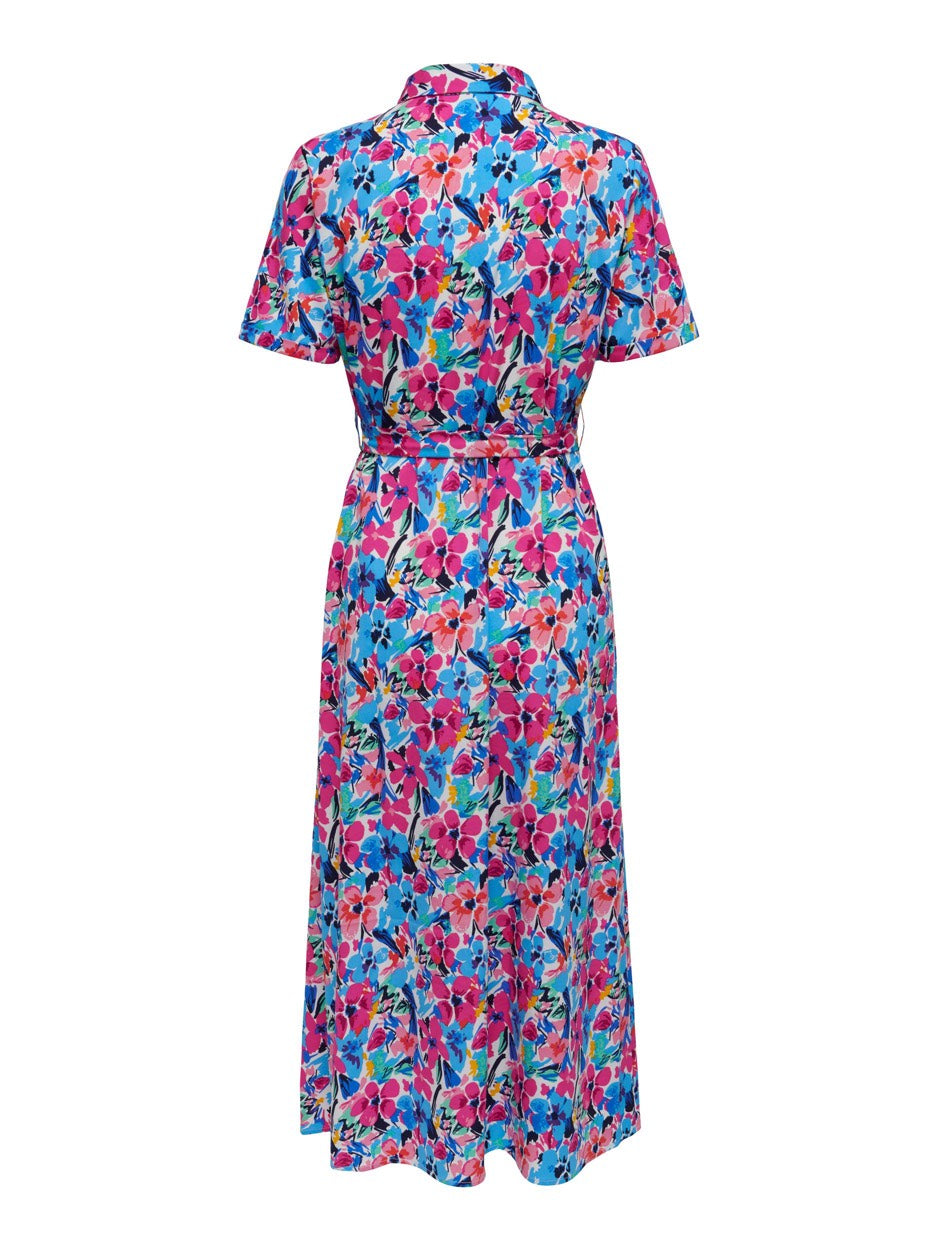 De all-over bloemenprint maakt deze jurk helemaal af. De kleurrijke bloemen geven de jurk een vrolijke en zomerse uitstraling. Het materiaal van de jurk bestaat uit hoogwaardig 100% polyester, wat zorgt voor een comfortabele pasvorm en een luxe uitstraling.