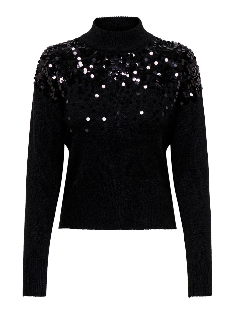 Onlalba Ls Sequins High Neck Knt - Zwart