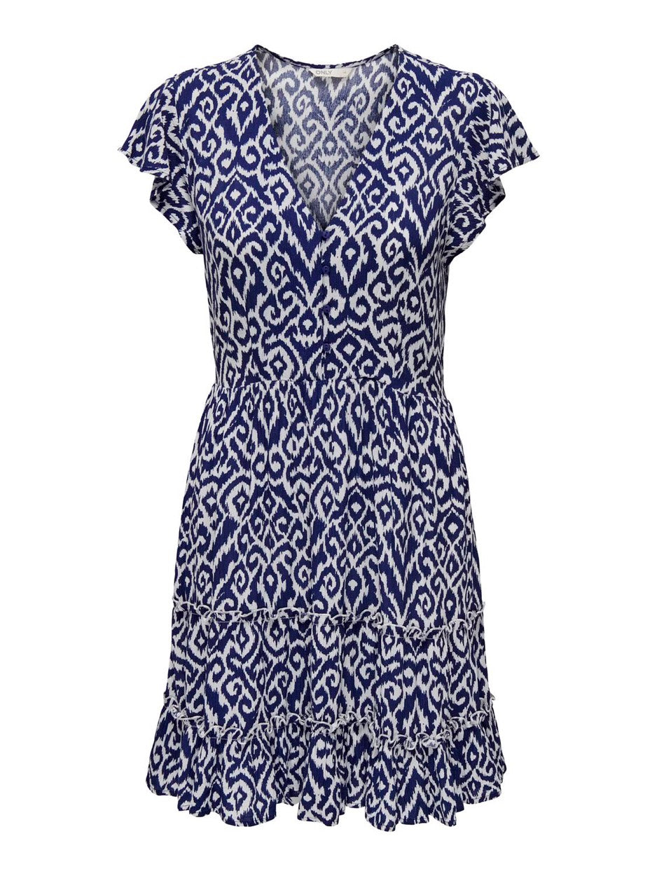 Onlclaudette Life Ss Mini Dress Wvn Noos - Blauw Dessin