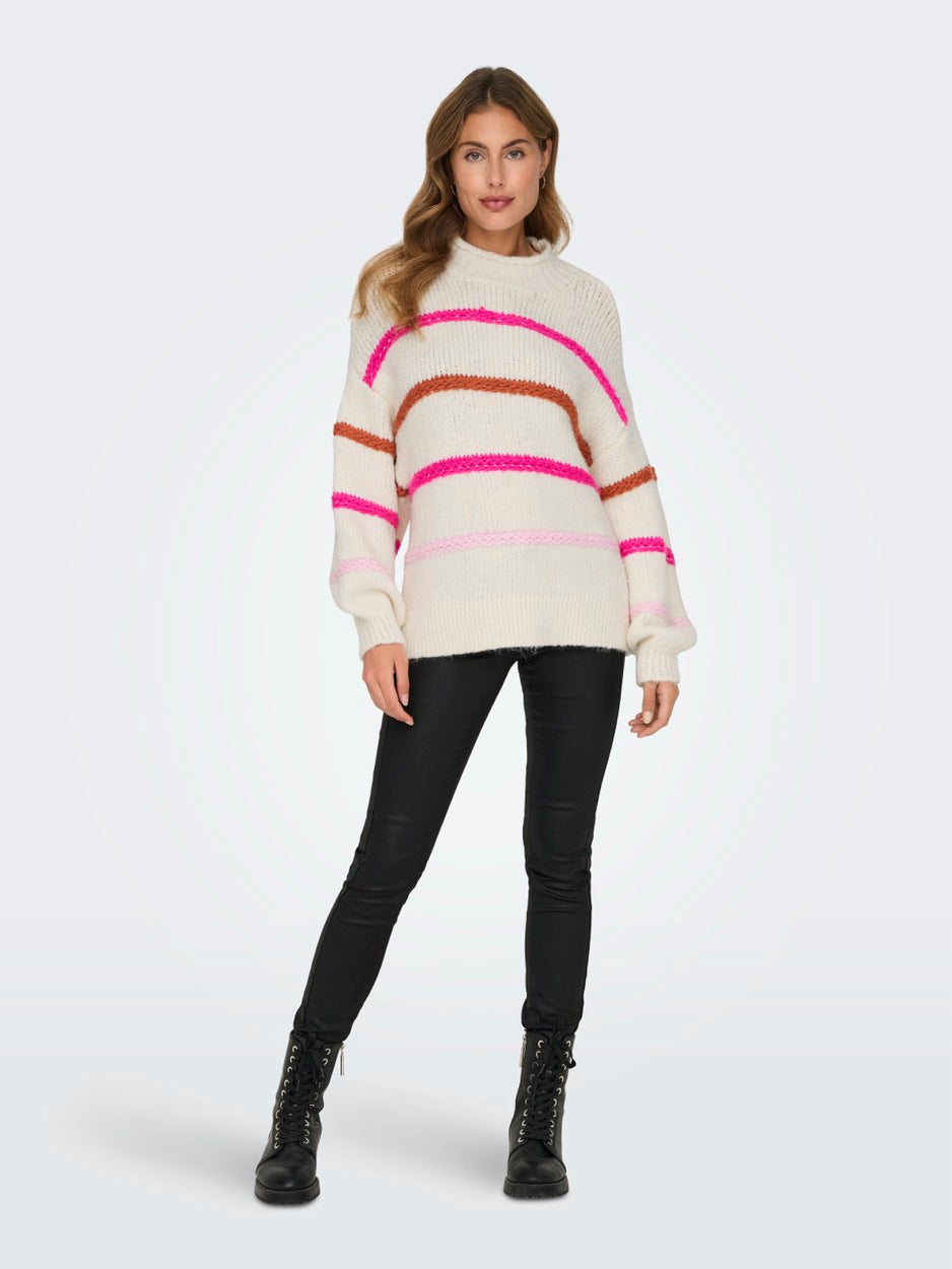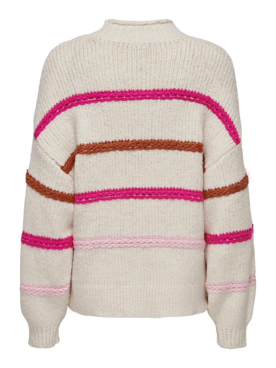 Onlmy Ls Stripe High Neck Knt - Ecru Dessin