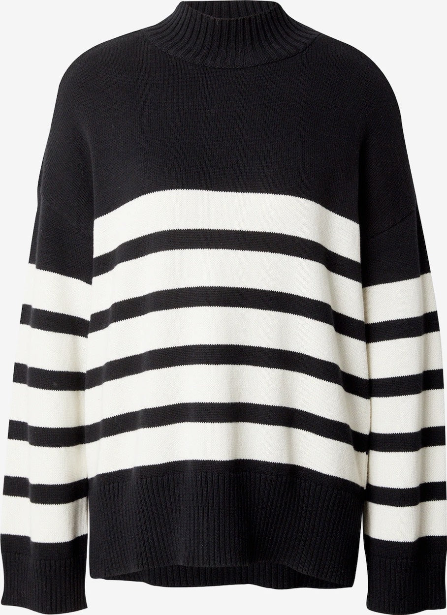 De zwarte/ecru kleurige trui is makkelijk te combineren met diverse kledingstukken en stijlen. Draag de trui op een stoere jeans voor een casual look of combineer het met een rokje voor een chique outfit. Hoe dan ook, met deze trui ga je altijd stijlvol de deur uit.