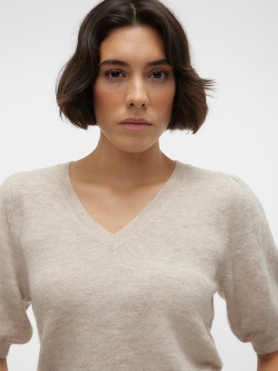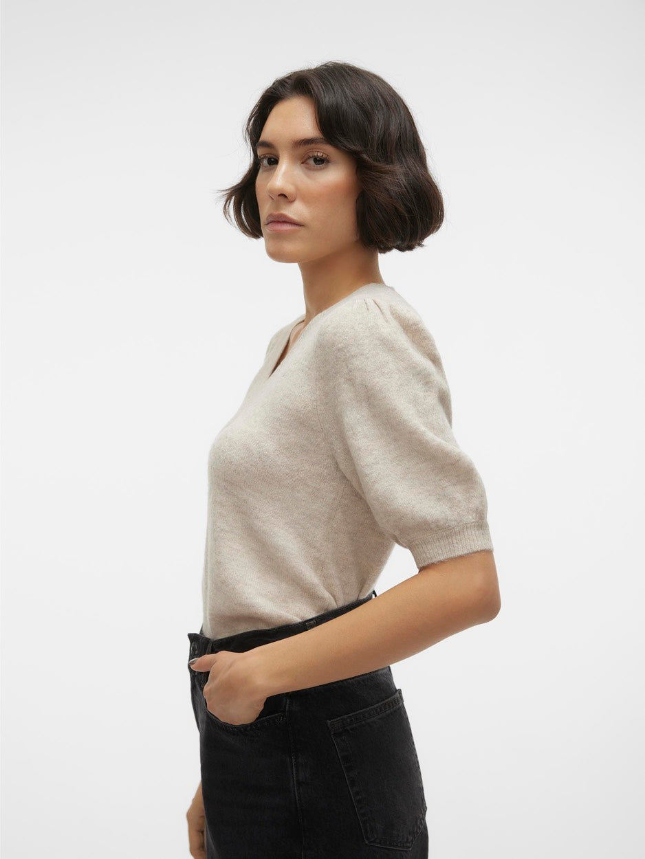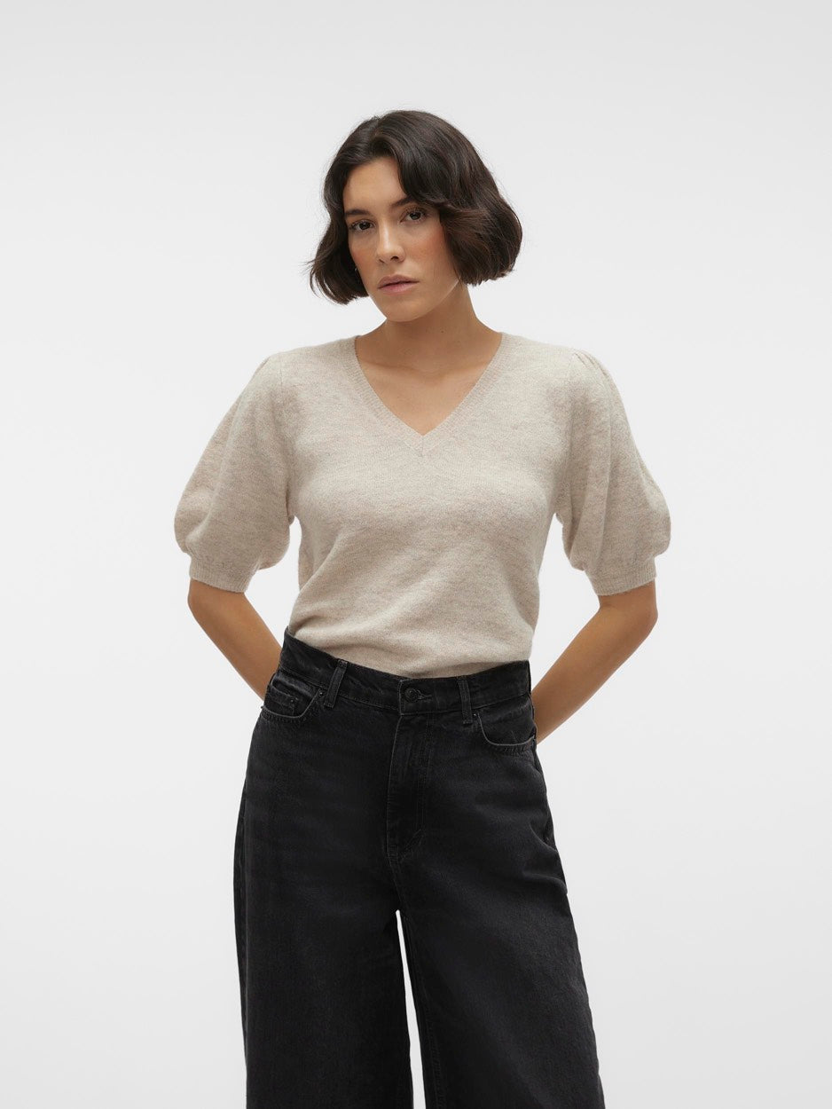 Vmellylefile Ss V-neck Puff Pullove - Zand